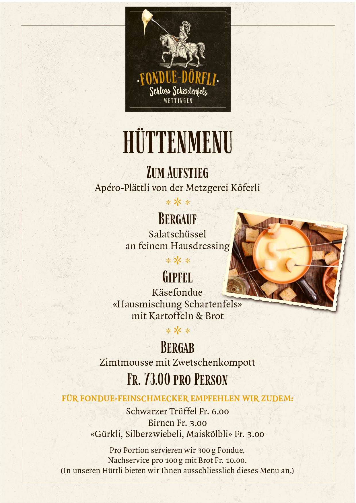 Weitere Informationen und Reservationen unter schloss-schartenfels.ch/fondue-doerfli/